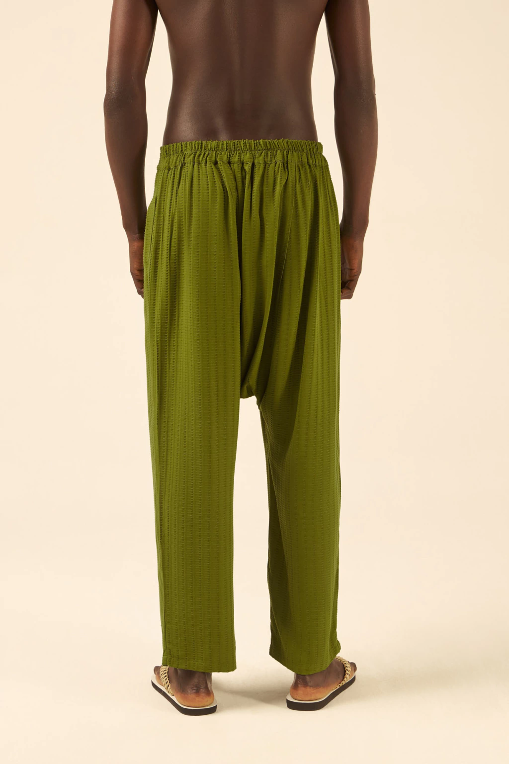 Modelagem saruel com caimento amplo e fluido, proporcionando movimento natural e conforto durante o uso. Possui cós elástico ajustável que garante praticidade e adaptação perfeita ao corpo, além de bolsos funcionais que unem estilo e utilidade.