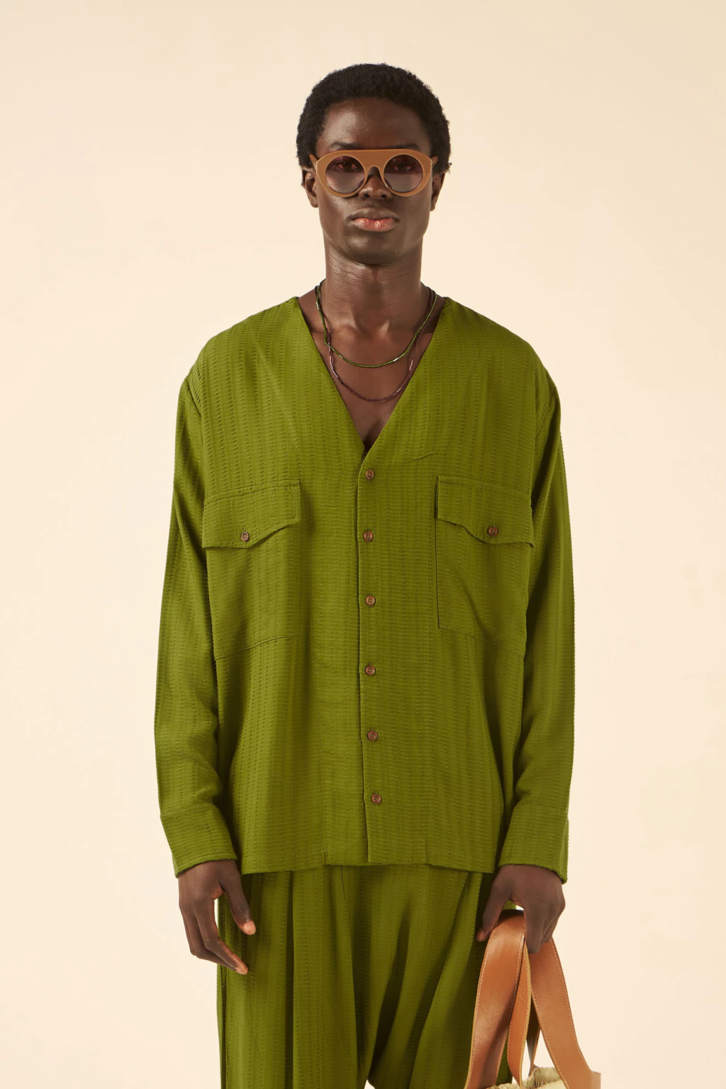 Com modelagem reta e moderna, a Camisa Cargo Belchior traz gola em decote em “V” sem colarinho, mangas longas e fechamento frontal por botões. O destaque fica para os bolsos frontais com abas e botões, que remetem ao estilo cargo e acrescentam funcionalidade e personalidade à peça.