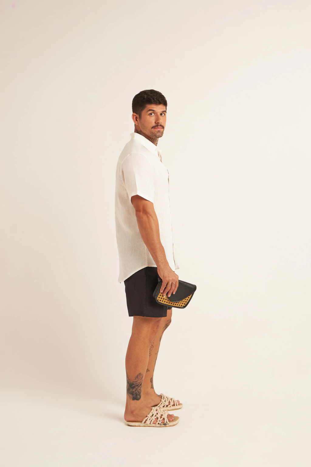 Tecido: Confeccionada em linho, fibra natural conhecida por sua respirabilidade e toque fresco. Além de elegante, o linho possui um caimento leve e refinado que garante conforto térmico mesmo nos dias mais quentes.
