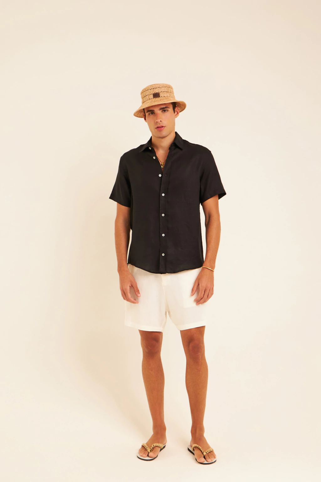 • Tecido: Confeccionada em linho, fibra natural conhecida por sua respirabilidade e toque fresco. Além de elegante, o linho possui um caimento leve e refinado que garante conforto térmico mesmo nos dias mais quentes.
