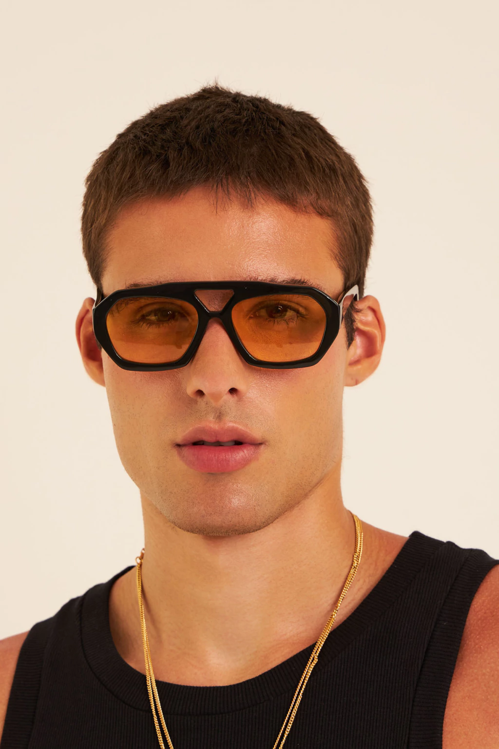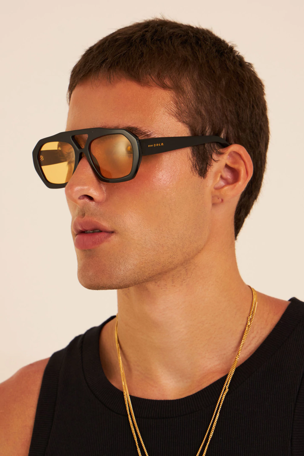 Design: Arrojado e contemporâneo, com armação espessa em formato geométrico e ponte com recorte central que adiciona personalidade ao visual. As lentes retangulares levemente curvas proporcionam um look imponente e cheio de estilo.