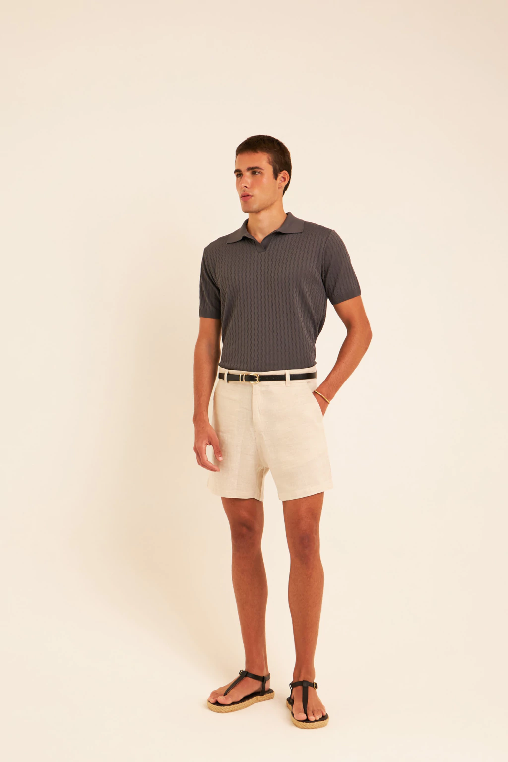 Design: Modelagem clássica com gola polo estruturada e mangas curtas, que proporciona um visual alinhado e moderno. Possui padronagem discreta em relevo, adicionando textura e personalidade à peça.
