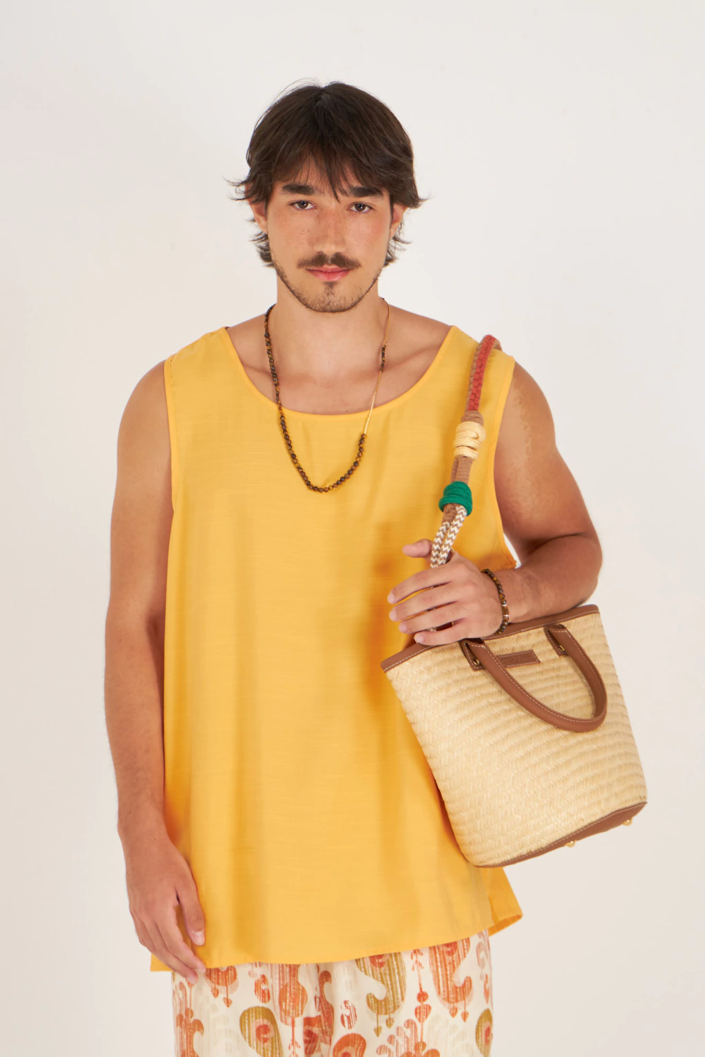 Tecido: Confeccionada em uma mistura de viscose e poliéster, essa regata combina o toque macio e fresco da viscose com a durabilidade do poliéster. O tecido tem um leve brilho natural e proporciona excelente respirabilidade, ideal para os dias mais quentes.